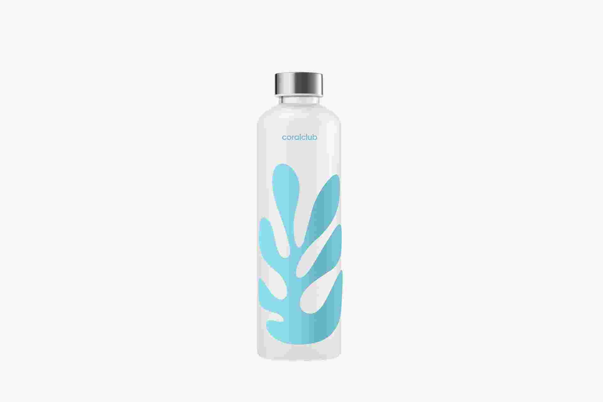 Recipient pentru apă din sticlă borosilicată, creat special pentru aniversarea a 25 de ani de Coral Club.