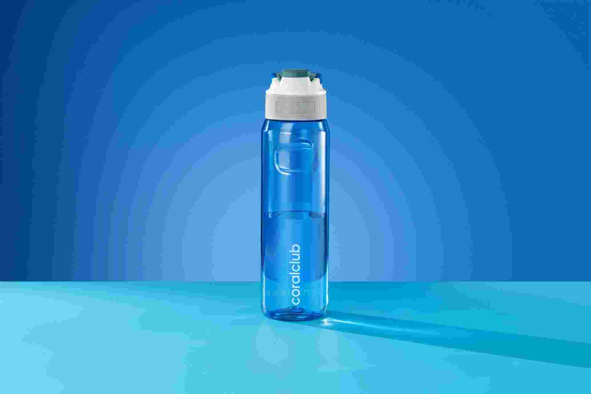 Capacul 3 în 1 cu pozițiile disponibile ale comutatorului: „Buton”, „Deschis” și „Închis” asigură siguranța utilizării – nu se pierde nici o picătură de apă din sticlă. Mânerul ușor pliabil de pe capac este confortabil pentru transport, iar forma ergonomică cu mânere previne alunecarea din mâini.