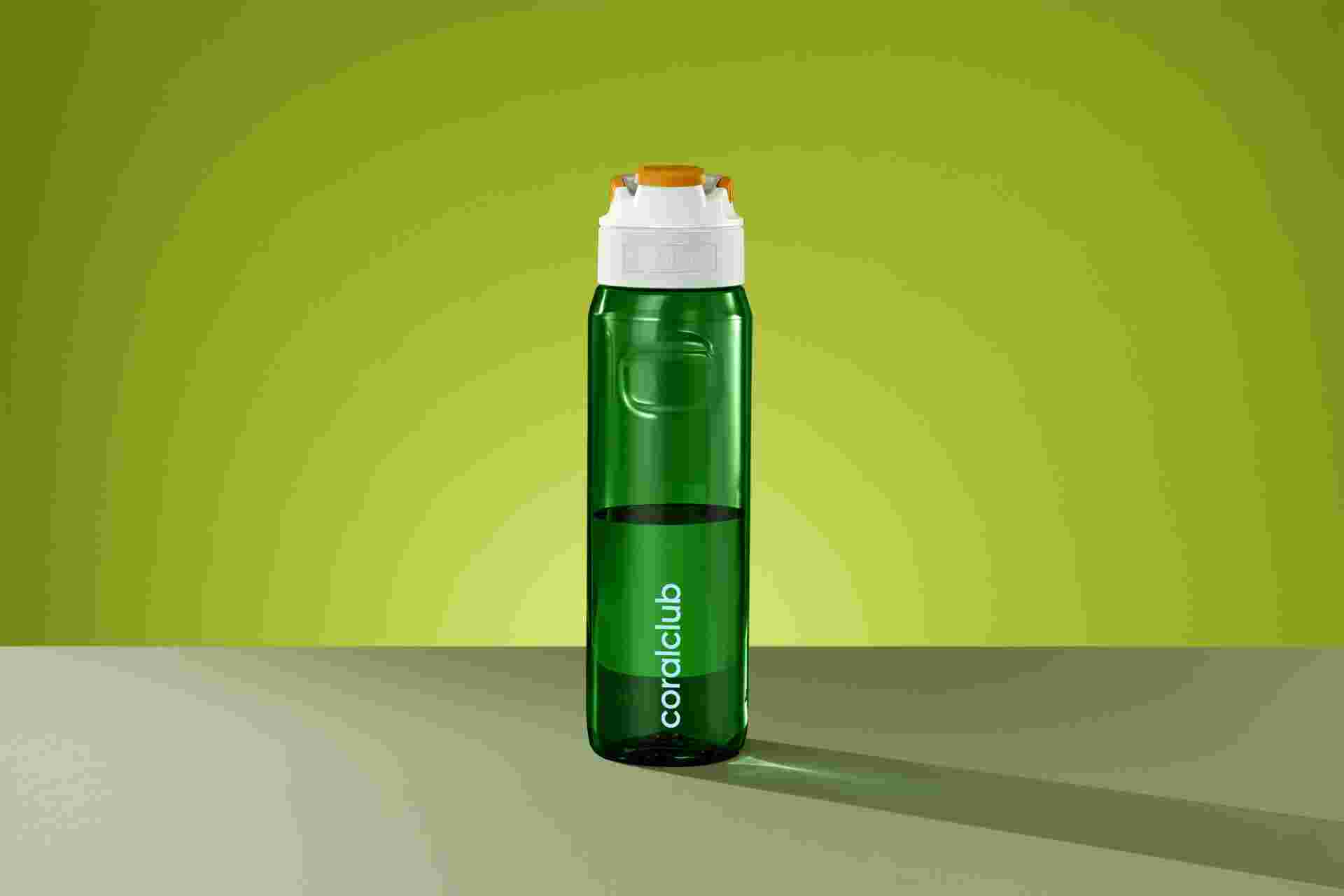 Capacul 3 în 1 cu pozițiile disponibile ale comutatorului: „Buton”, „Deschis” și „Închis” asigură siguranța utilizării – nu se pierde nici o picătură de apă din sticlă. Mânerul ușor pliabil de pe capac este confortabil pentru transport, iar forma ergonomică cu mânere previne alunecarea din mâini.